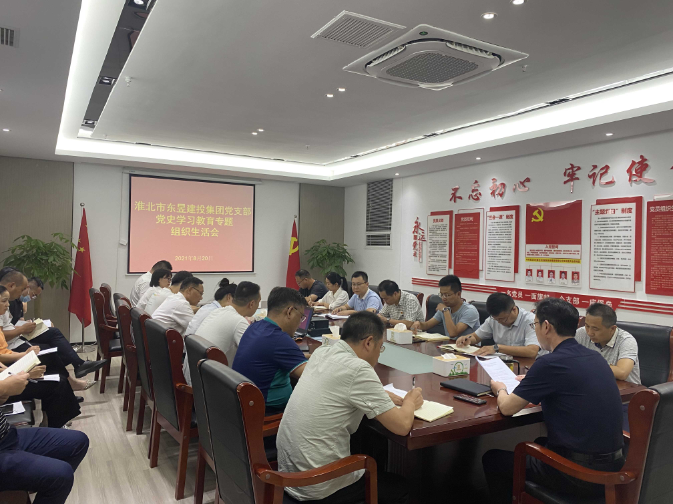 8月20日下午,淮北市東昱建設投資集團有限公司黨支部在黨員活動室召開黨史學習教育專題組織生活會,集團公司全體黨員參加。