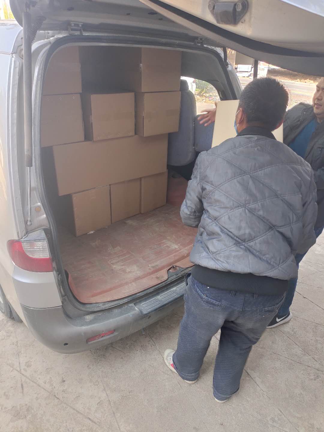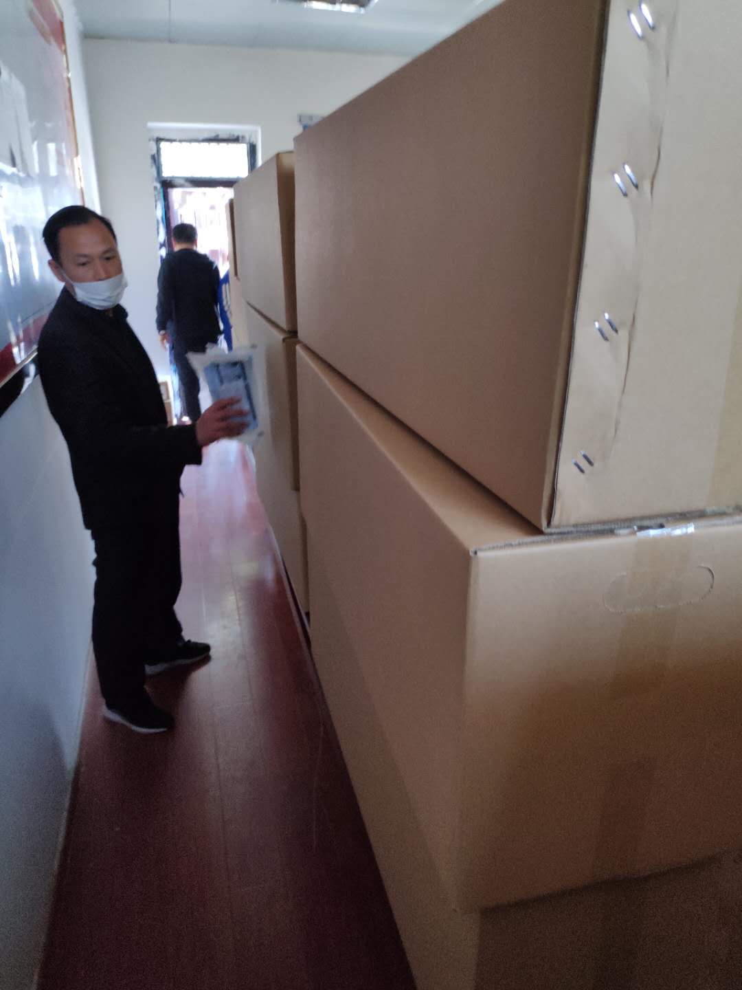 2020年4月12日上午,東昱集團下屬子公司森海商貿將采購的一次性醫(yī)用口罩16萬只送達杜集區(qū)教育局指定地點交付使用。