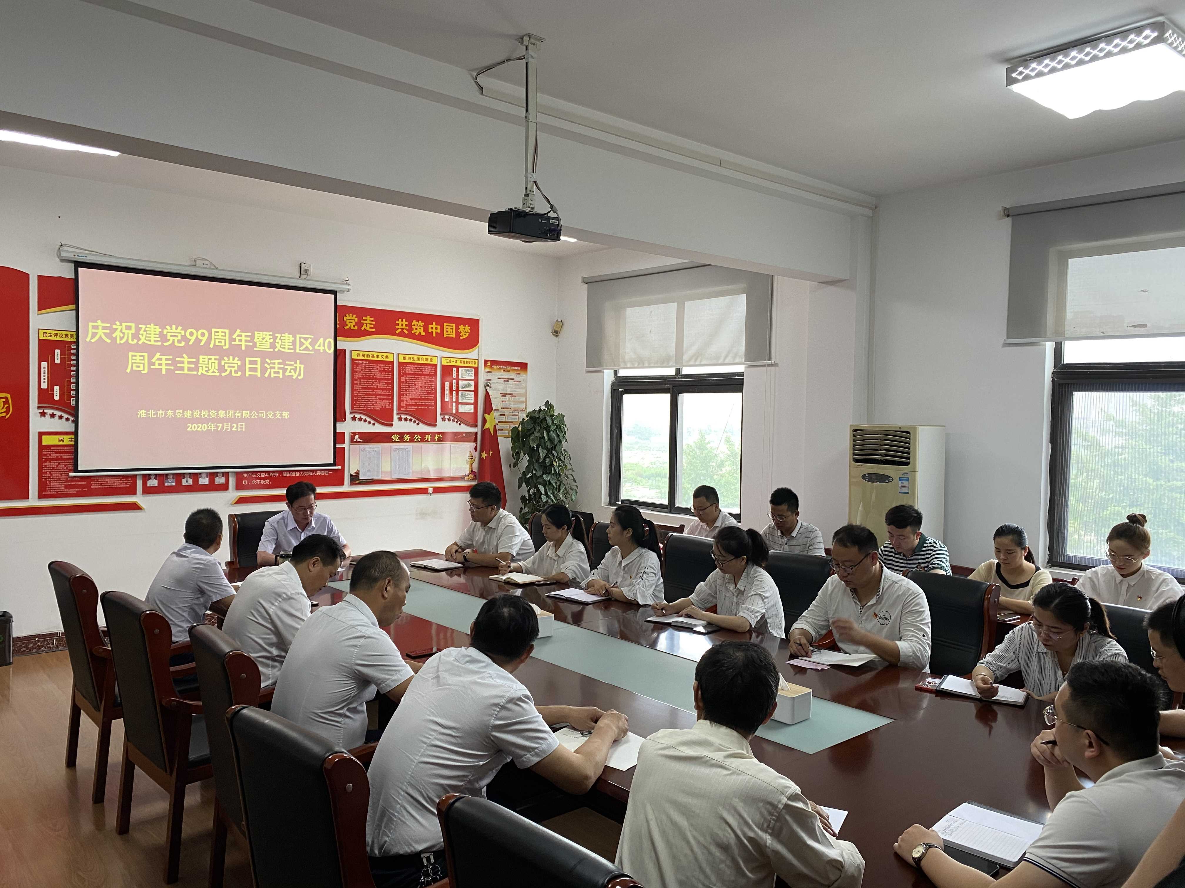 為慶祝建黨99周年暨建區40周年,7月2日,淮北市東昱建設投資集團有限公司黨支部在三樓黨員活動室開展主題黨日活動,黨支部黨員和入黨積極分子共20余人參加活動。